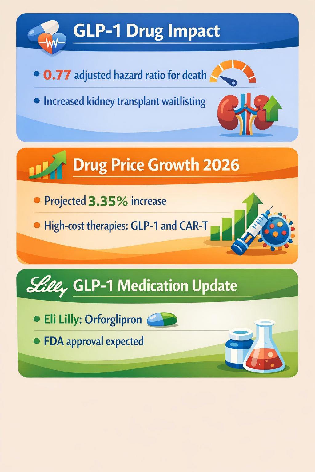 - First GLP-1 weight loss pill approved: Novo Nordisk's oral Wegovy is expected to be widely available, with another pill from Eli Lilly likely later in 2026 - offering a needle-free option many patients prefer. Newswise. https://www.newswise.com/articles/why-2026-will-reshape-access-to-glp-1-weight-loss-drugs